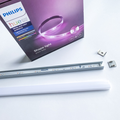 Denna profil passar för Philip Hue LED-strip vilket underlättar montering av belysningen samtidigt som den ger en känsla av en färdig LED-list armatur. Det går självklart att fräsa in denna typ av list eller bara placera den lägligt för ett stadigare intryck.
