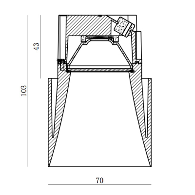 | Mått | Diam 70mm. Höjd 103mm. Håltagning 62mm. Inbyggnadshöjd: 43mm |