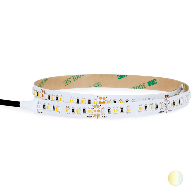 Led tejp där det går att växla mellan varmvitt och kallvitt ljus (2700K-6000K). Ljusfärgen styrs med hjälp av en kontroller som kopplas in mellan ledtejpen och transformatorn. Ljusfärgen sätts manuellt eller så kan man använda förprogrammerade scenarion.