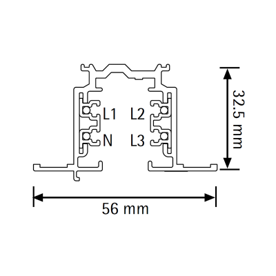 Global Trac 3-fas skena för infällt montage. För inkoppling och tillbehör används samma artilkar som för de vanliga utanpåliggande 3-fas skenorna.