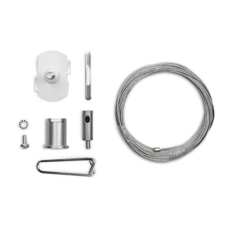 OBS. Detta kit innehåller en vajer. Ska du pendla ned exempelvis en 2m skena så behöver du två stycken vajer-kit. Är det flera längder behöver du bygga på med fler vajer-kit.