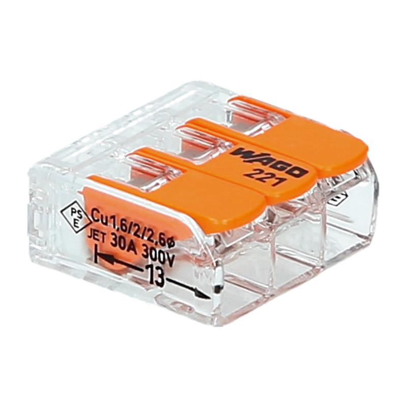 Kompakt öppningsbar klämma för snabbkoppling av alla typer av ledare (0,2 och 4 mm²). Genomskinlig i utförandet så att du smidigt kan se om ledarna är ordentligt anslutna och skalade till rätt längd.